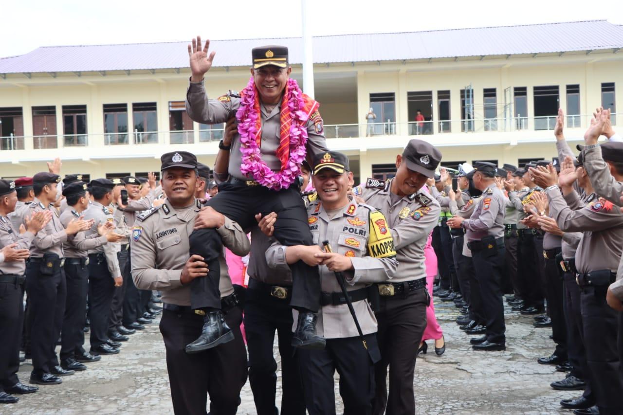 Kapolres Tanah Gendong Anggota Personel Personil Purna Bakti Sebagai Tanda Penghargaan dan Penghormatan