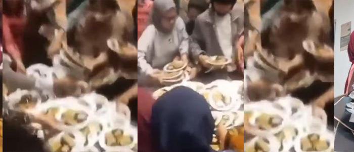 Pasalnya mereka terlihat rebutan makanan yang ada di meja hidangan tersebut.