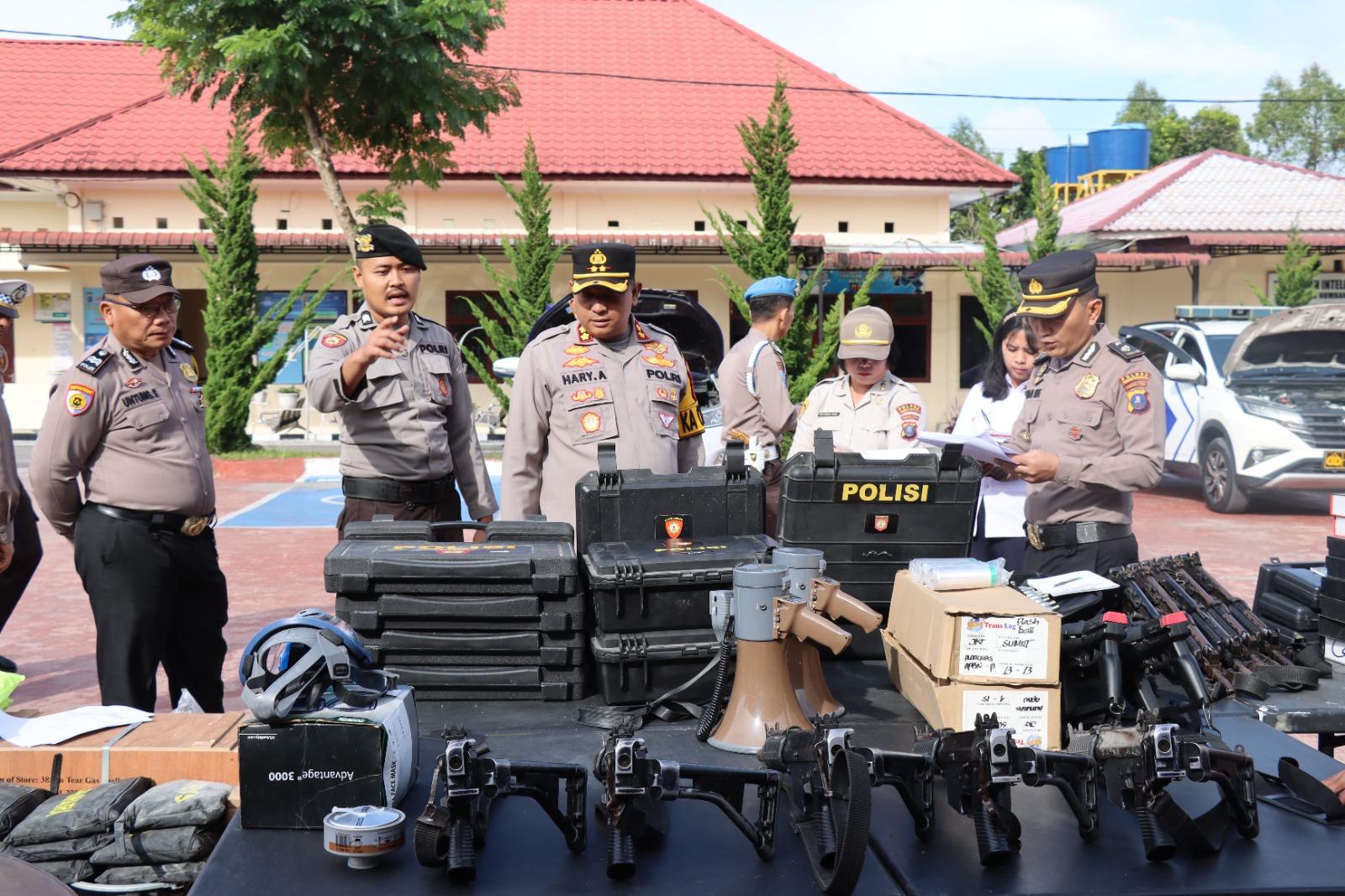 Kapolre mengecek jumlah barang Inventaris, juga mengecek kondisi barang layak atau tidak untuk digunakan dalam pelaksanaan tugas dilapangan menjelang pemilu 2024.