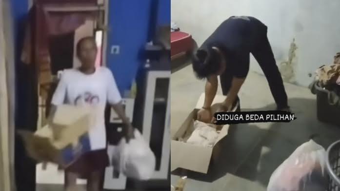 Terlihat dalam video ibu mertua memberikan sebuah kardus besar kepada menantunya.