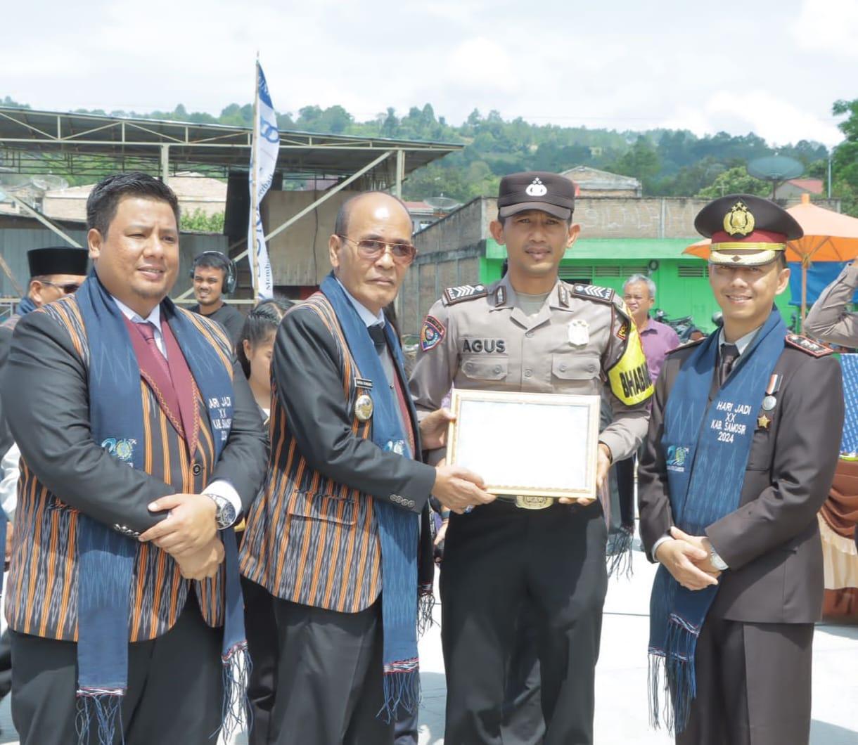 Pada acara tersebut, Pemerintah Kabupaten Samosir memberikan penghargaan kepada personil Polres Samosir yang telah memberikan pelayanan terbaik kepada masyarakat, Selasa (27/02/2024)