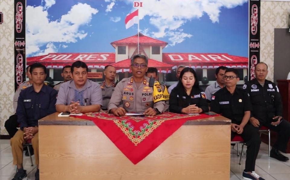 Kapolres Dairi, AKBP Agus Bahari dalam konferensi pers di Mapolres Dairi memaparkan rangkaian pelaksanaan pemilu yang terjadi di Kabupaten Dairi.