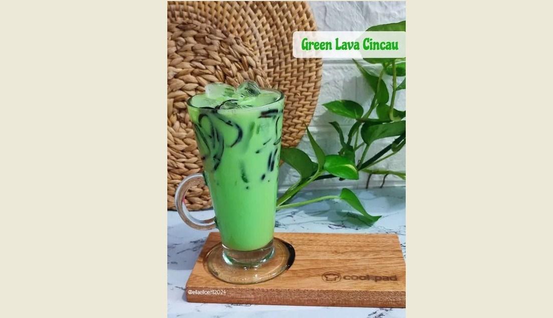 Siapkan gelas saji. Masukkan es batu. Tuang green lava. Masukkan cincau. Aduk, dan siap disajikan.(tribun-medan.com)