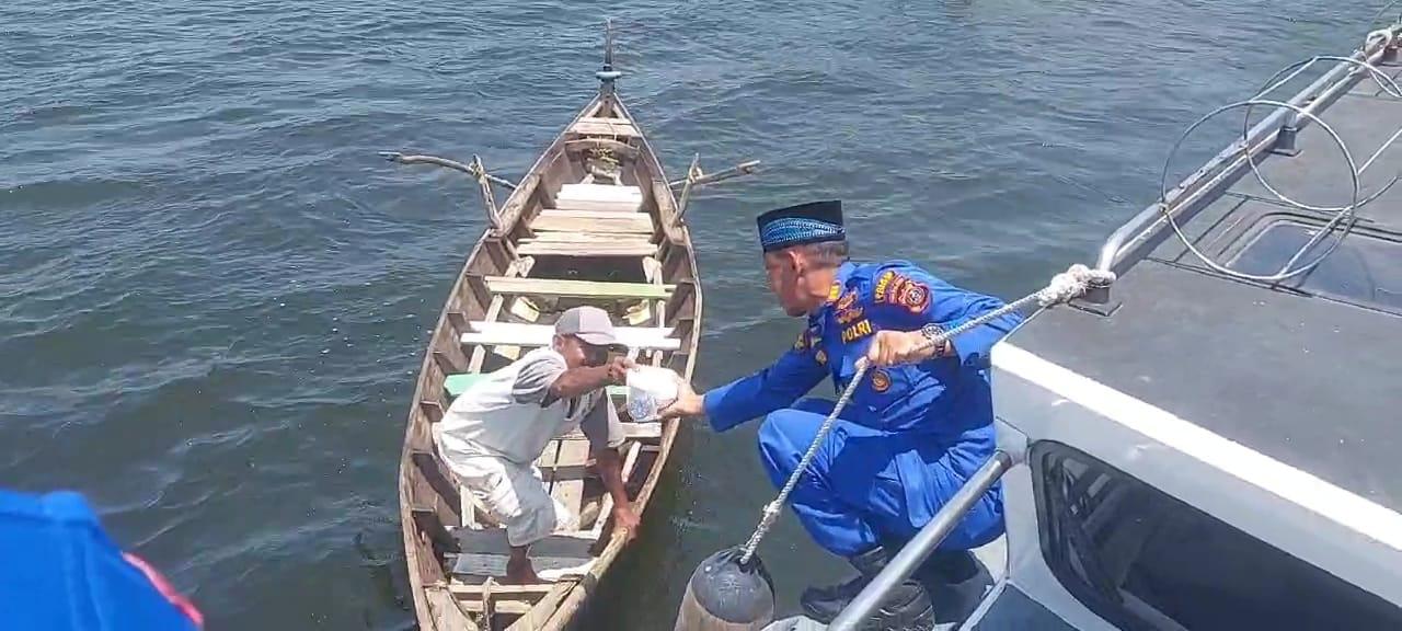 Sat Polairud Polres Langkat Bagikan Takjil di Perairan Alur Sei Babalan