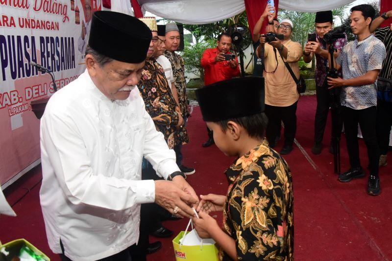 Kegiatan buka puasa bersama keluarga besar PMI Kabupaten Deliserdang ini dirangkaikan dengan pemberian santunan kepada anak yatim dan mendengarkan tausyiah dari Ustadz H Aiman MA