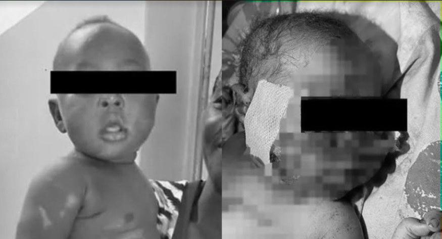 Bayi tersebut ditarik dari tanah dengan penuh luka dan lebam akibat tekanan terkubur di bawah tanah semalaman.