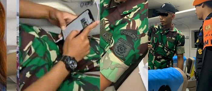 Adapun pria berseragam TNI keciduk diam-diam mengambil foto wanita yang sedang tidur di kereta api.