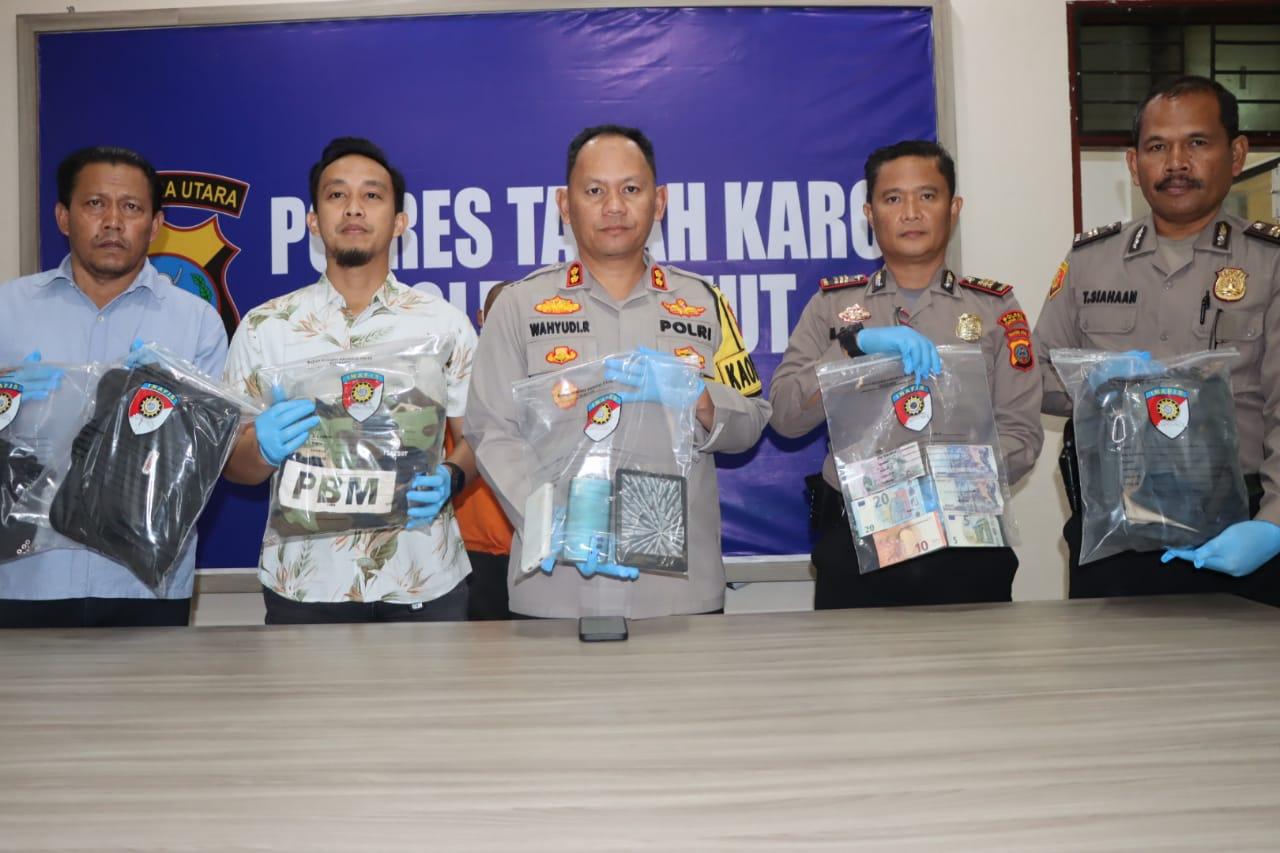 "Satu orang tersangka berhasil diamankan yakni seorang laki laki inisial P (22) warga Desa Bandar Tongging Kecamatan Merek Kabupaten Karo,'' kata Kapolres Tanah Karo AKBP Wahyudi Rahman, S.H, S.I.K, M.M, saat press release di Mapolres Tanah Karo, Sabtu(13/04/2024) pukul 12.00 WIB.