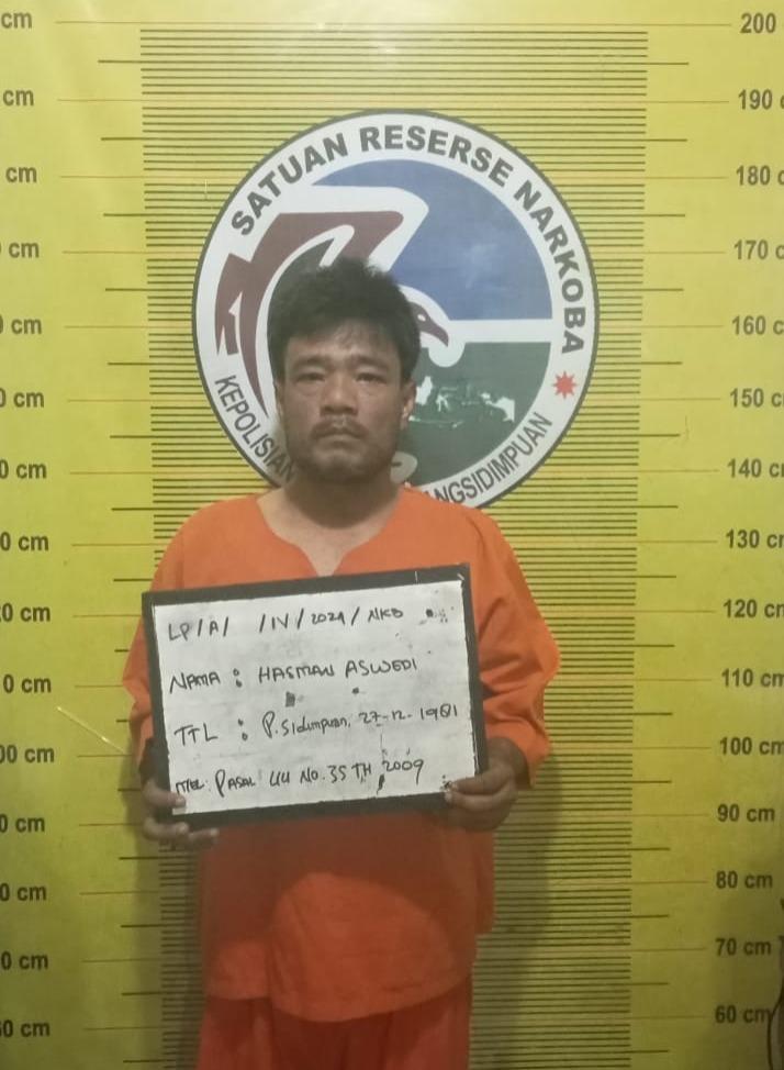 TRIBUN-MEDAN.COM, PADANGSIDIMPUAN-Tim Opsnal Satresnarkoba Polres padangsidimpuan kembali membekuk seorang pria berinisial HAH alias Asman (44) di kawasan Silayang-layang jalan Sudirman Kelurahan Wek II, Kecamatan Padangsidimpuan Utara, Kota Padangsidimpuan, Sabtu (20/4/2024).