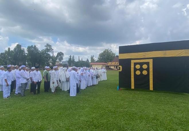 Sebanyak 199 Jemaah Calon Haji (JCH) asal Kota Pematangsiantar menjalani tahapan manasik di Lapangan Brimob Subden 2B Pematangsiantar
