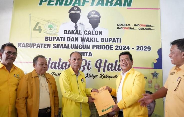 Bupati Simalungun, Radiapoh Hasiholan Sinaga menyerahkan formulir pendaftarannya ke DPC Golkar Kabupaten Simalungun.
