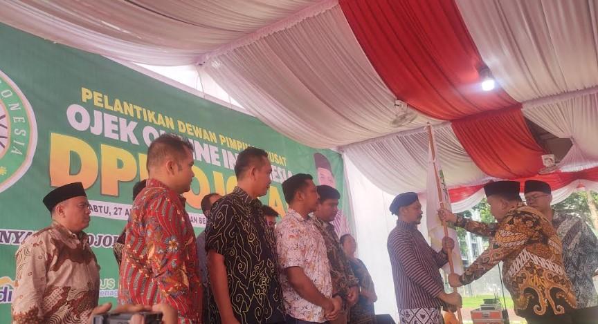 Puluhan anggota Dewan Pimpinan Pusat Ojek Online Indonesia (DPP Ojolali) Sumatera Utara resmi dikukuhkan di Lapangan Benteng, Sabtu (27/4/2024).