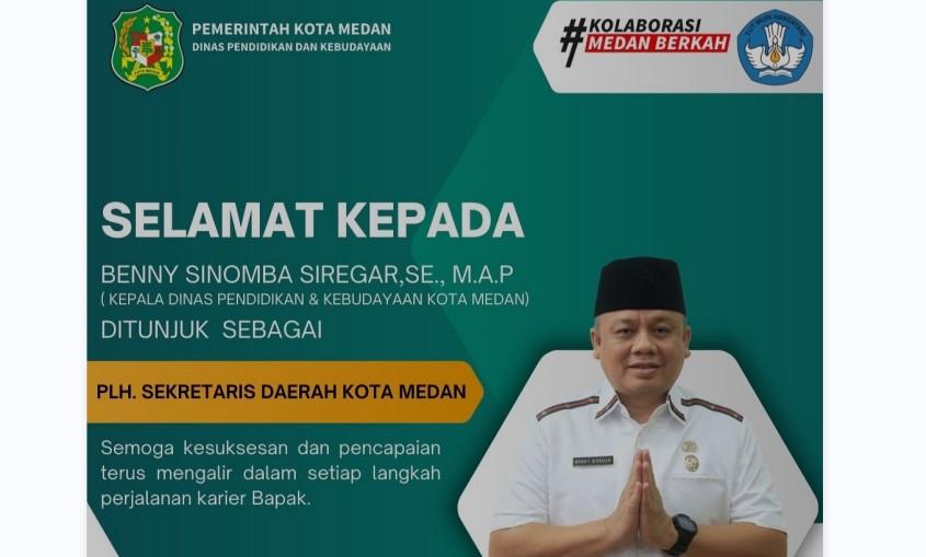 Kepala Dinas Pendidikan dan Kebudayaan Benny Sinomba Siregar ditunjuk sebagai Pelaksana harian Sekretaris Daerah (Plh Sekda) Pemko Medan.