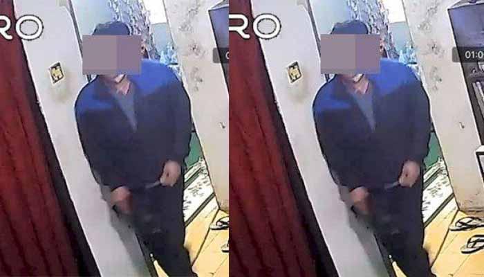 Dalam video CCTV, terlihat pelaku menggunakan jaket biru ikut bersama salah satu rombongan keluarga, masuk ke dalam rumah korban.