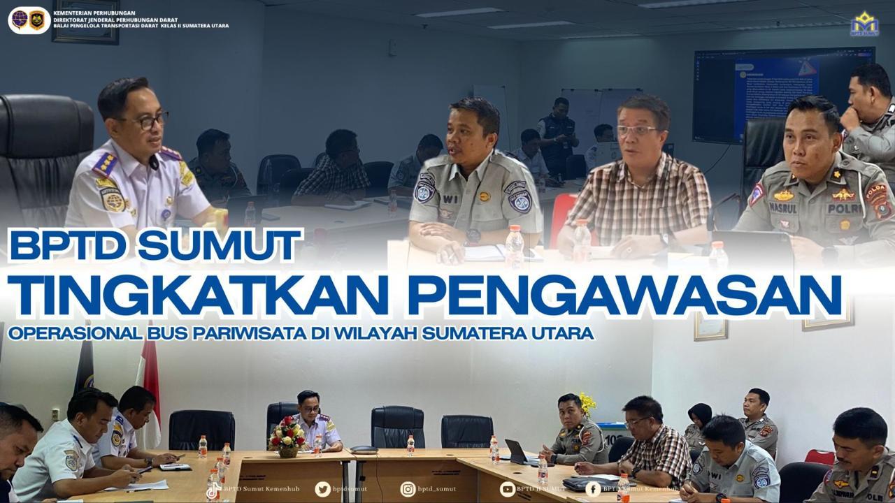 BPTD Kelas II Sumut lakukan rapat bersama dalam rangka pembahasan Pengawasan Operasional Bus Pariwisata di Sumut, Senin (20/5/2024).