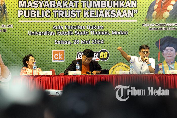 TRIBUN-MEDAN.com, MEDAN – Dalam upaya memperkuat integritas dan transparansi lembaga hukum di Indonesia, Komisi Kejaksaan RI Gelar Diskusi Publik yang digelar di aula Universitas Khatolik Santo Thomas, Medan, Selasa (28/5/2024). Diskusi publik bertajuk Peran Masyarakat Tumbuhkan Public Trust Kejaksaan, dihadiri oleh akademisi, praktisi hukum, dan lebih dari 250 mahasiswa.