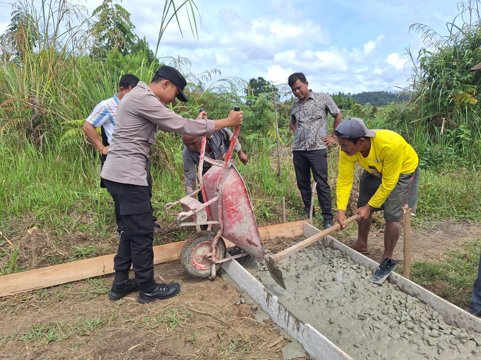 Personel Polsek Habinsaran Pantau Pembangunan Jalan Rabat Beton Desa Lumbanrau Selatan