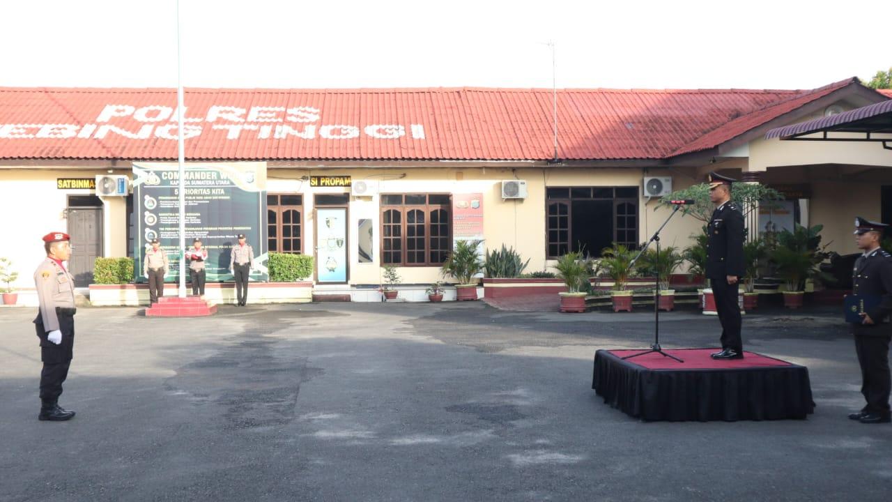 Polres Tebingtinggi menggelar Upacara Peringatan Hari Lahir Pancasila bertempat di Lapangan Apel Polres Tebingtinggi, Sabtu (01/06/2024).