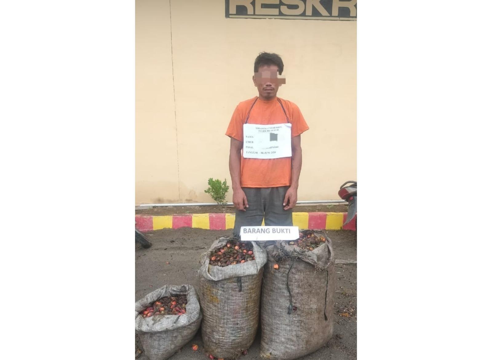 melakukan tindak pidana pencurian buah kelapa sawit, LP ditangkap Unit Reskrim Polsek Bilah Hilir, Kamis (06/06/2024).