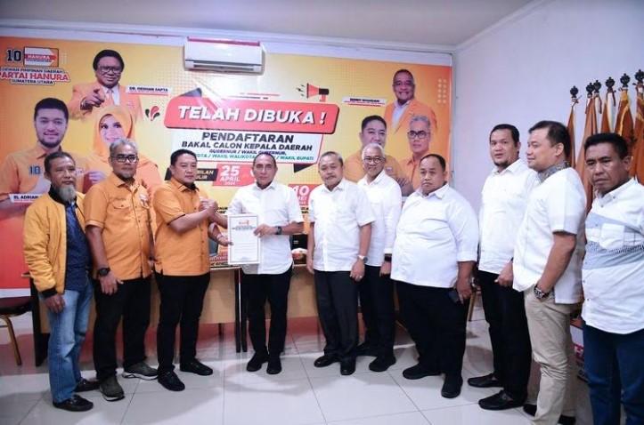 TRIBUN-MEDAN. com, MEDAN - DPP Hanura memberikan surat tugas kepada calon Gubernur Sumatera Utara Edy Rahmayadi.