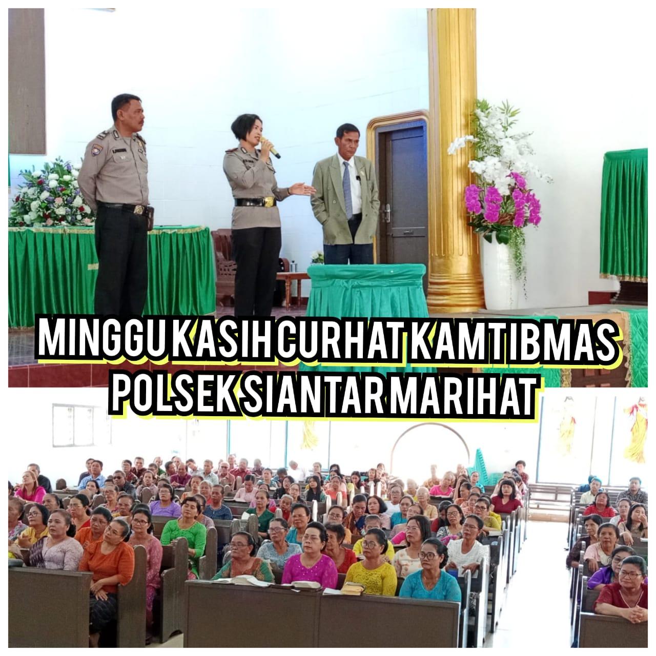 Kapolsek Sianțar Marihat AKP Relina Lumban Gaol S.Sos menggelar kegiatan Minggu Kasih Curhat Kamtibmas di Gereja HKI Juma Saba, Jalan Saribu Dolok