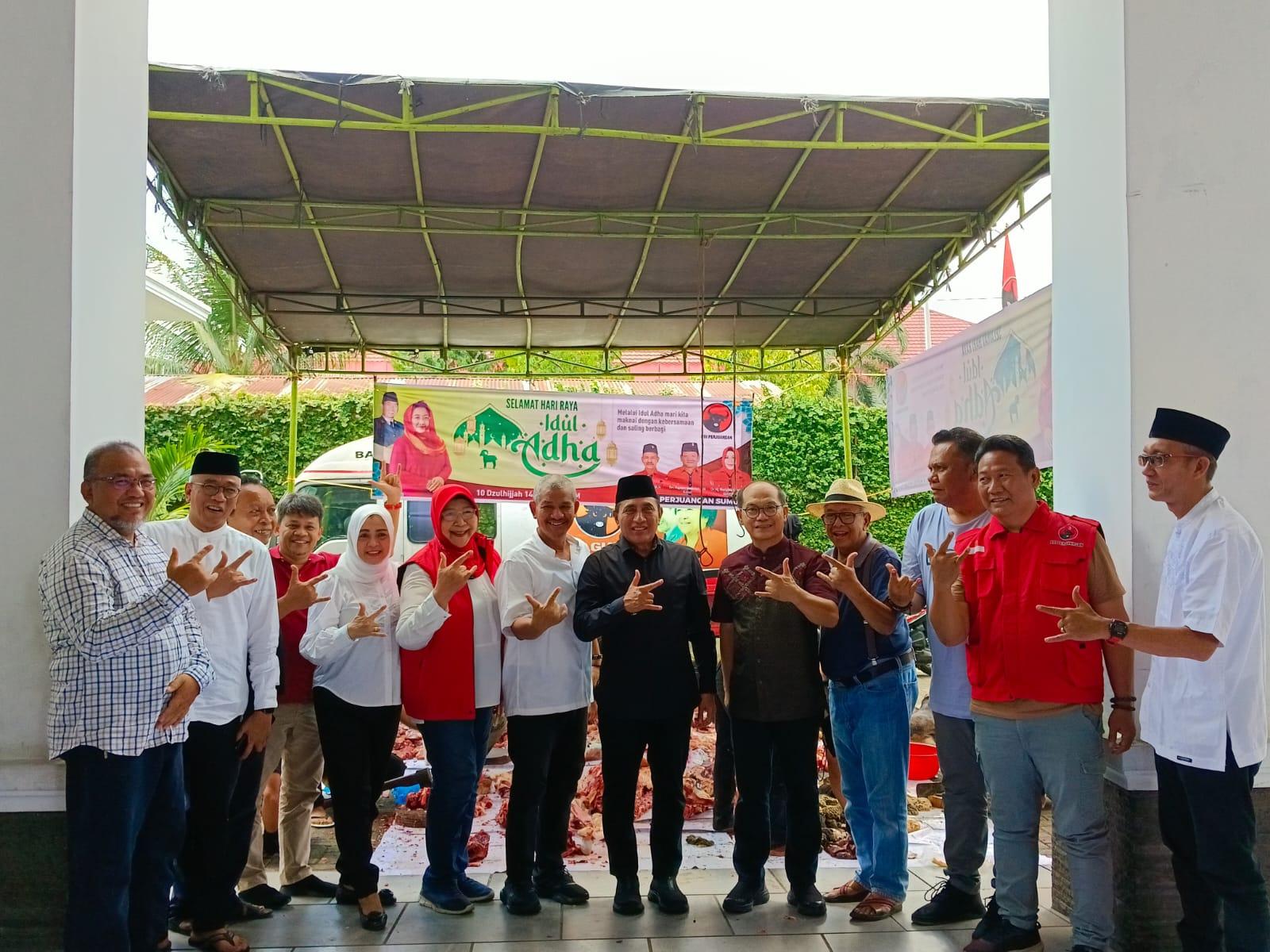 Dalam foto tampak Edy bersama pengurus DPD PDIP berpose salam mental usai melakukan penyembelihan daging kurban.