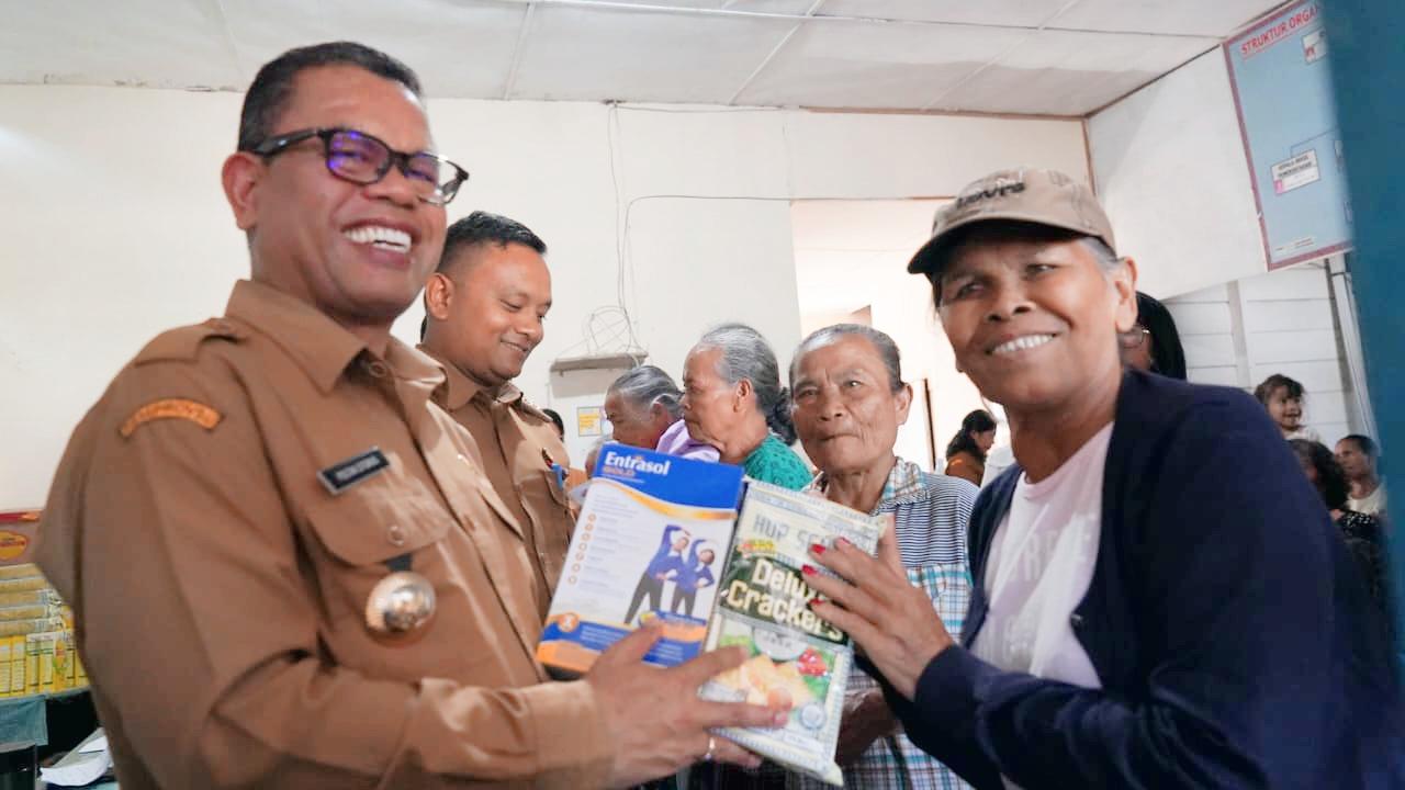 Dukung gizi Lansia dan Balita serta ibu hamil, Pemerintah Desa Paindoan, Balige menyerahkan makanan tambahan kepada lansia, balita dan ibu hamil.