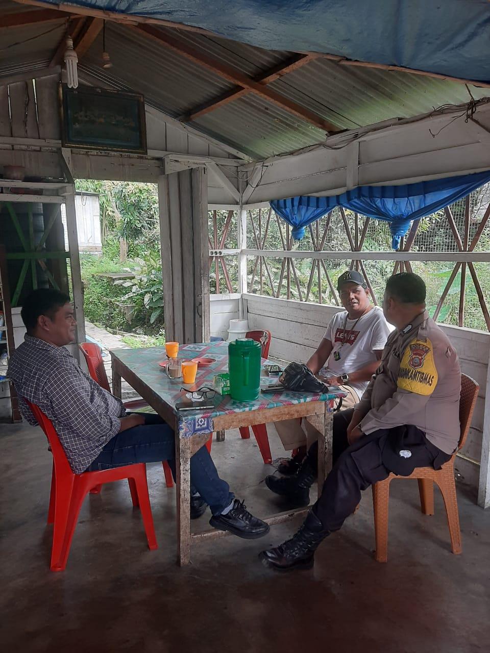 Bhabinkantibmas Polsek Porsea Polres Toba Bripka Derlan Sianturi Patroli dialogis dan tatap muka bersama masyarakat yang sedang duduk santai