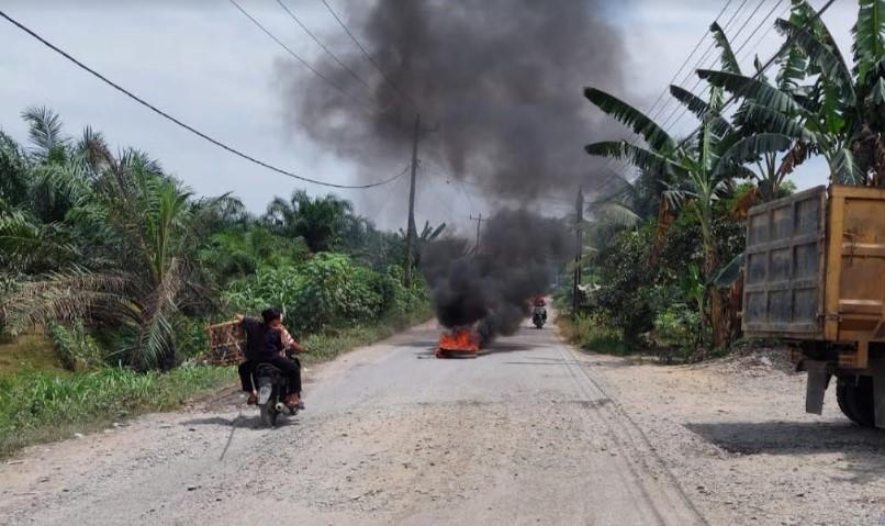 Warga yang bertempat tinggal di Lingkungan I-II, Kelurahan Pekan Selesai, Kecamatan Selesai, Kabupaten Langkat, Sumatera Utara, memblokir jalan.