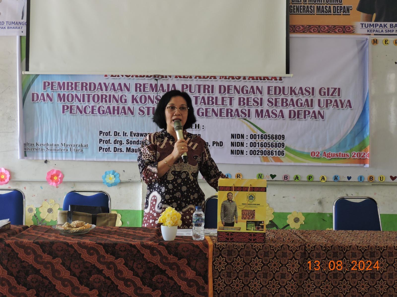 Prof. Dr. Ir. Evawany Yunita Aritonang menjelaskan, dari hasil pemeriksaan darah ditemukan beberapa siswi SMPN 1 Salak masih mengalami anemia yang ditengarai sebagai akibat buruknya keseimbangan gizi dikarenakan asupan makanan tidak seimbang antara protein dan karbohidrat.