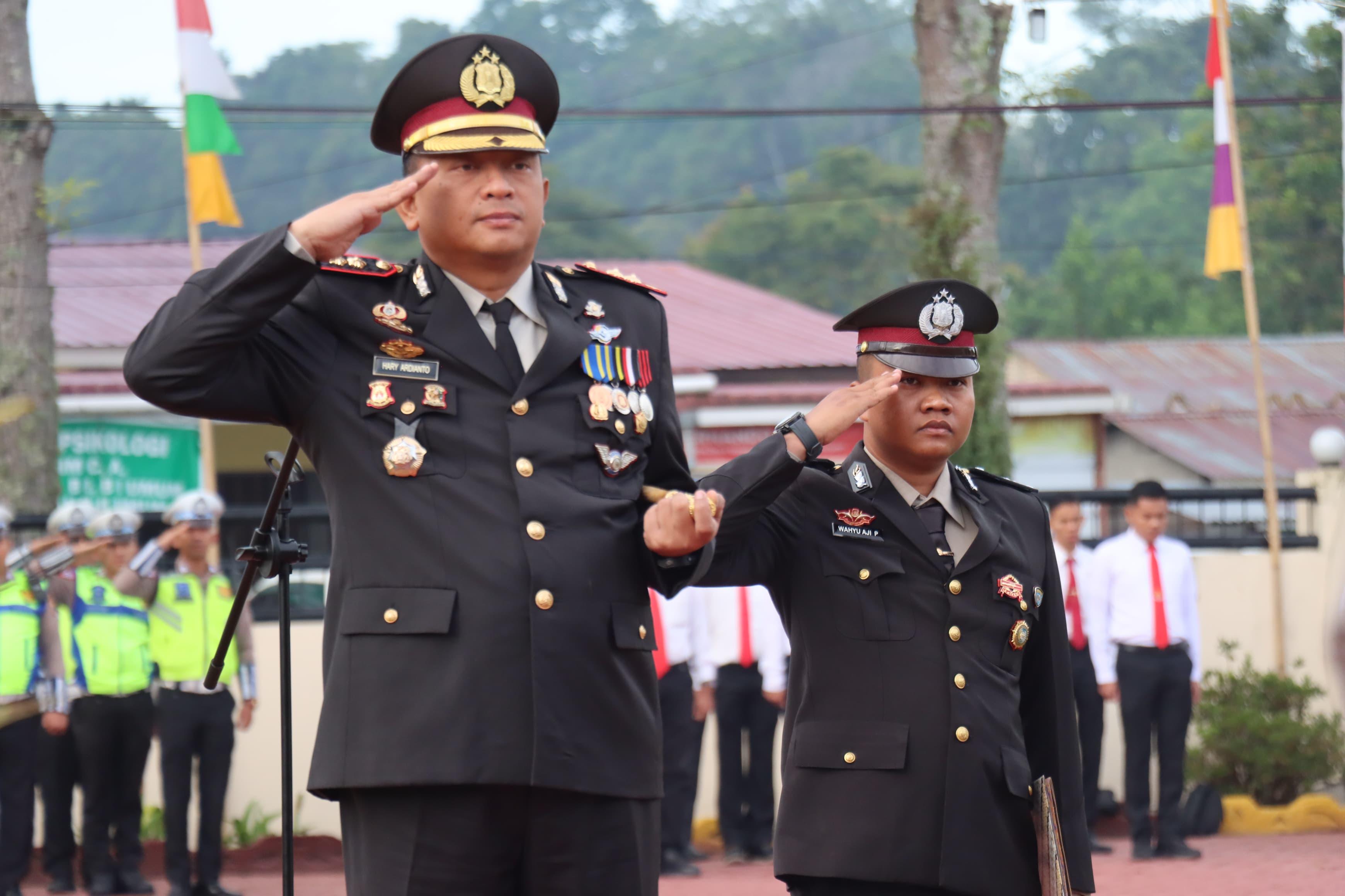 apolres Humbang Hasundutan, AKBP Hary Ardianto SH SIK MH, memimpin upacara pengibaran bendera Merah Putih dalam rangka memperingati Hari Ulang Tahun (