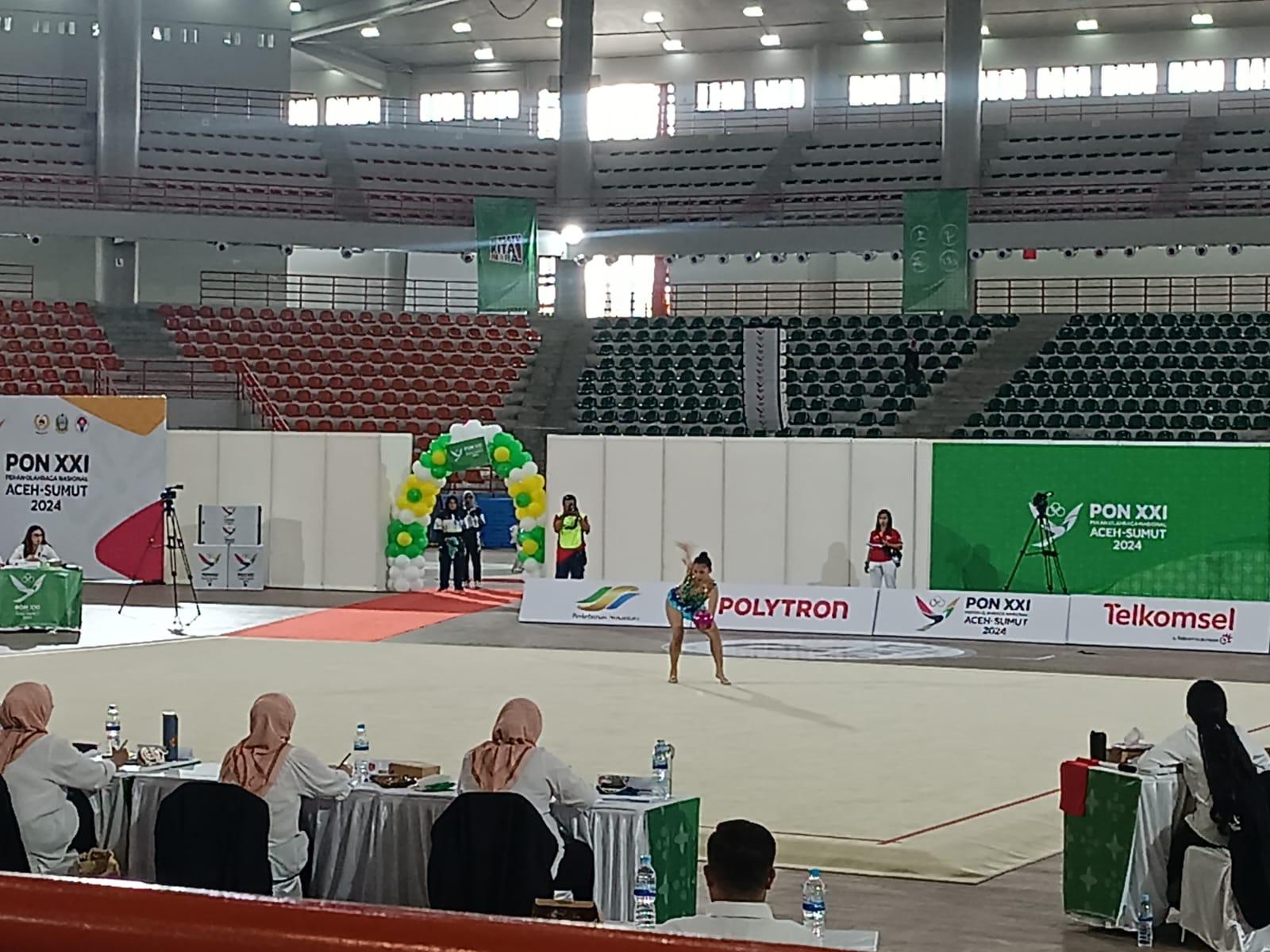 TRIBUN-MEDAN.com,MEDAN - Pertandingan Cabang Olahraga (Cabor) Senam kategori Ritmik resmi di gelar pada Pekan Olahraga Nasional (PON) XXI Aceh-Sumut 2024.
