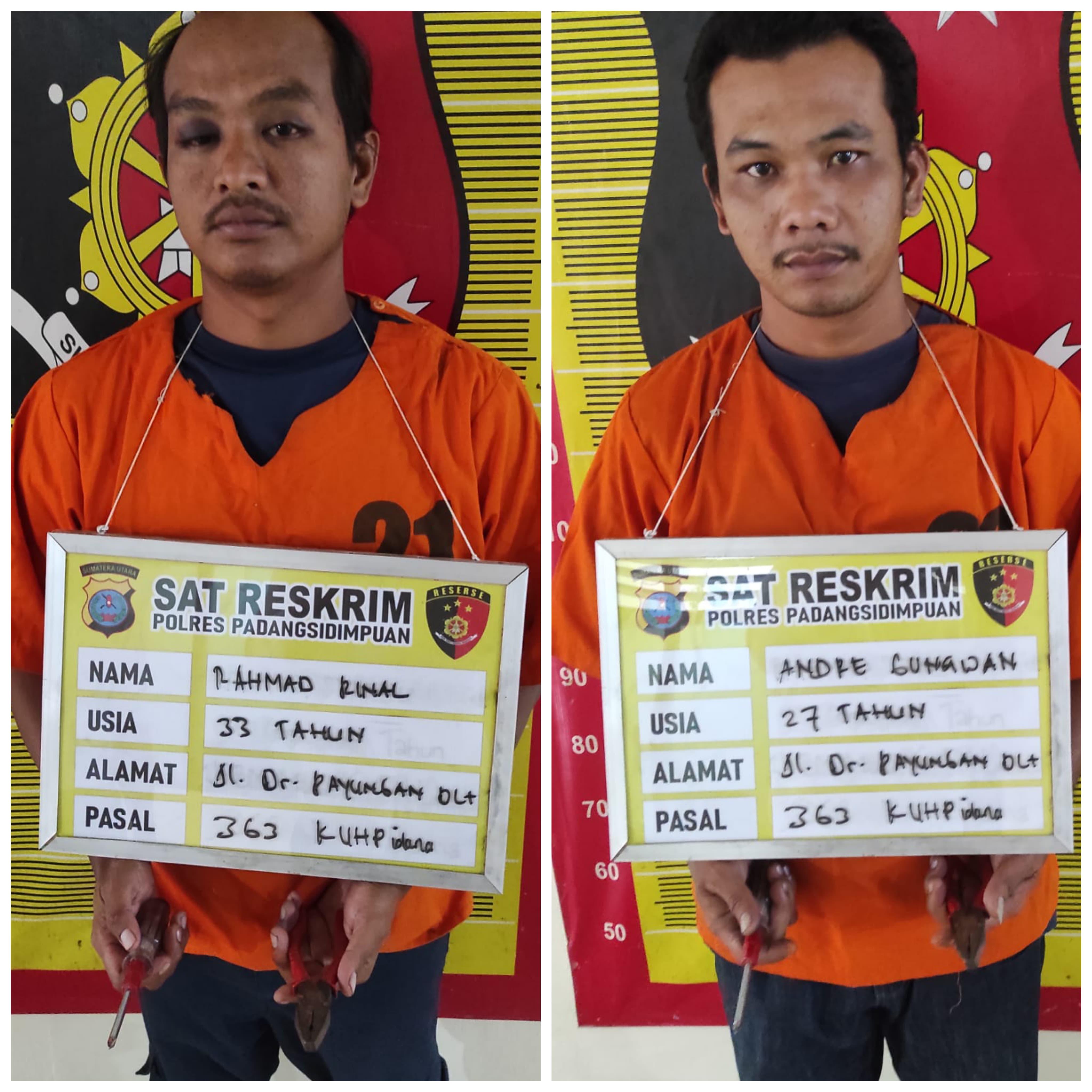 pria warga Padangsidimpuan, berinisial RR (32) dan AG (26), ditangkap oleh Tim Opsnal Sat Reskrim Polres Padangsidimpuan setelah diduga terlibat dalam