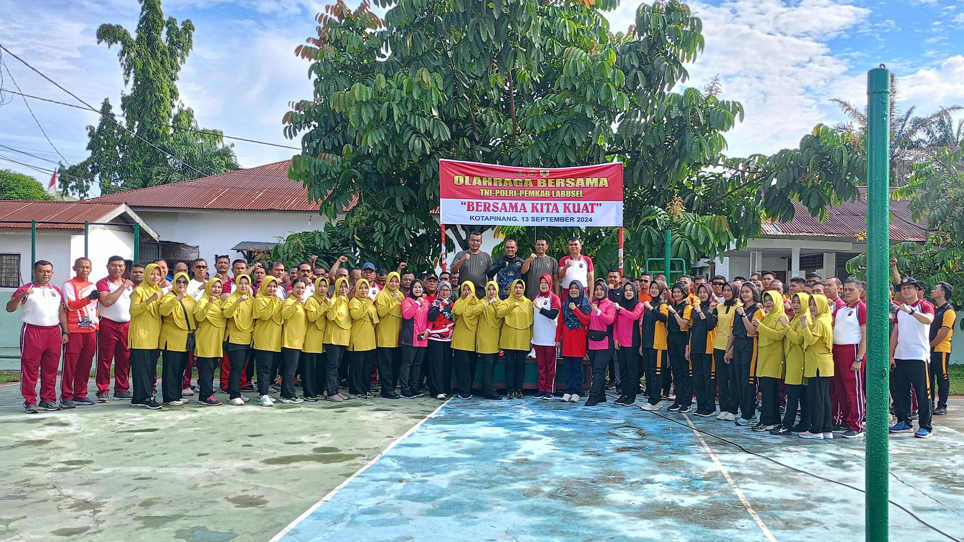 Kalapas Kotapinang ikut olahraga bersama TNI, Polri, dan Pemkab Labusel, memperkuat sinergi antar instansi dengan tema "Bersama Kita Kuat".