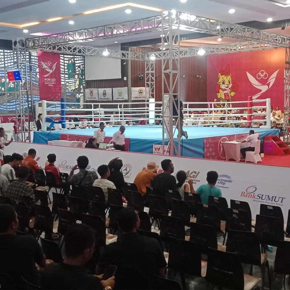 TRIBUN-MEDAN.com, SIANTAR - Pertandingan Cabang Olahraga Tinju PON XXI 2024 memasuki babak puncak pada hari ini, Kamis (19/9/2024) siang.
