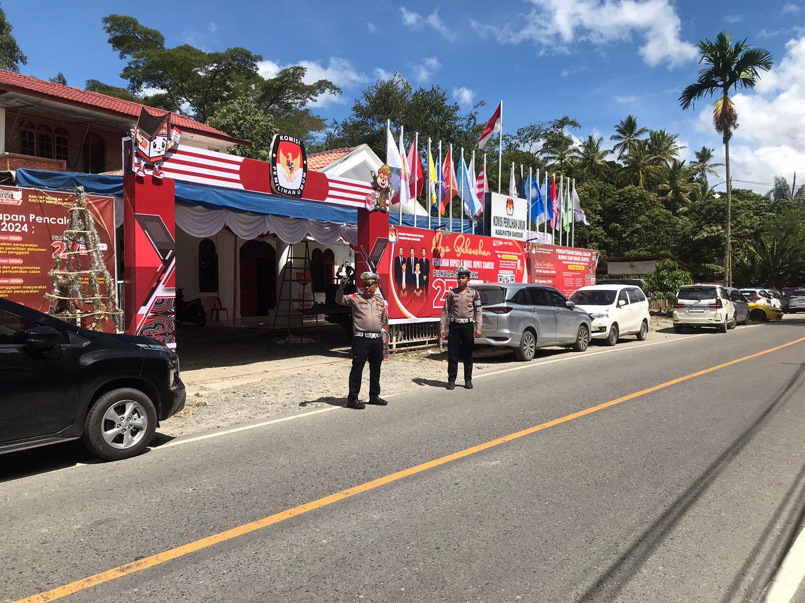 lam upaya memastikan keamanan dan kelancaran proses penetapan pasangan calon Bupati dan Wakil Bupati Samosir pada Pilkada Serentak 2024, Polres Samosi