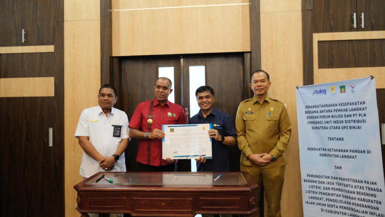 PLN UP3 Binjai tandatangani MoU dengan Pemkab Langkat dan BULOG untuk Penguatan Ketahanan Pangan dan Pengelolaan Listrik di Langkat.