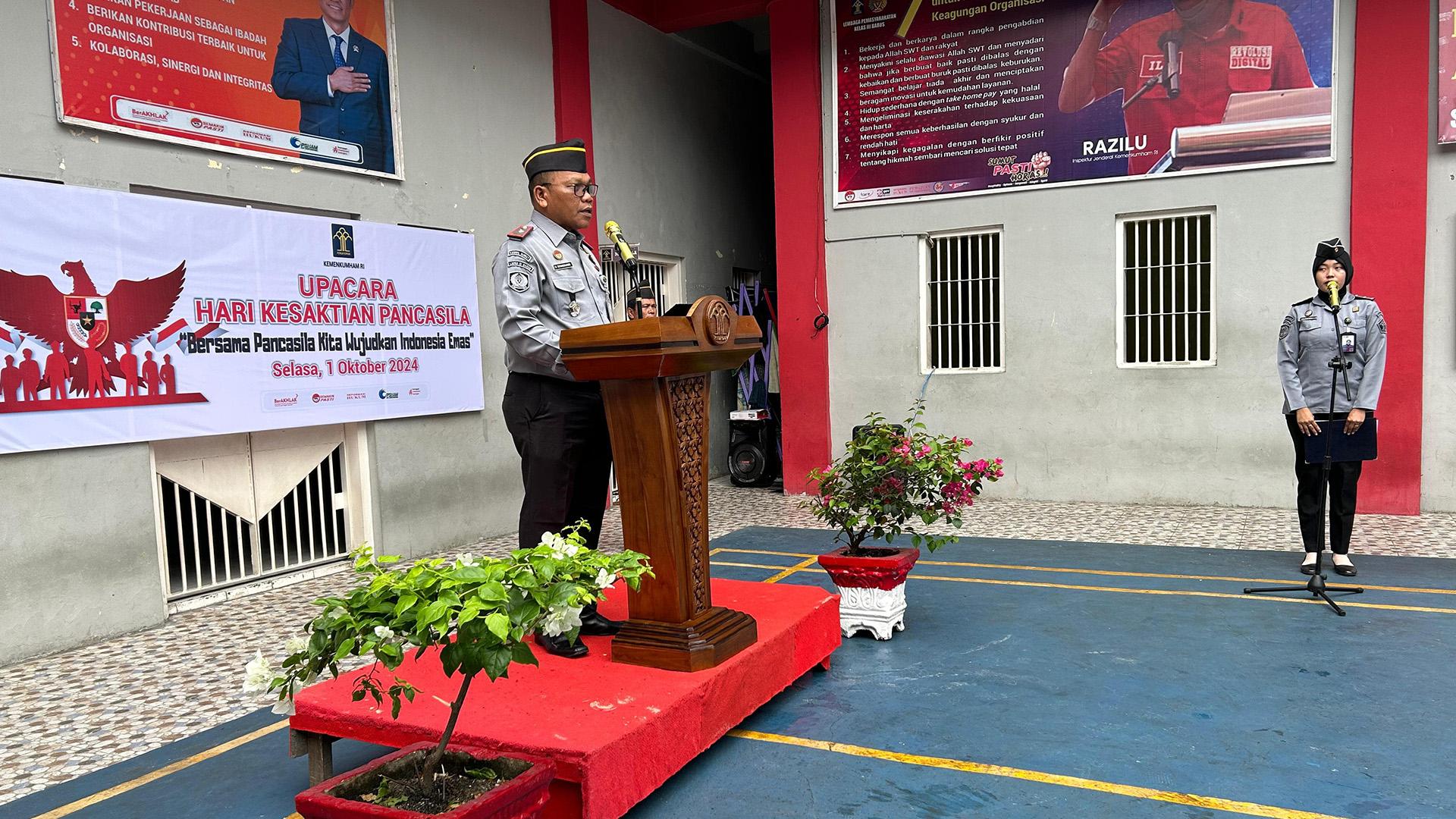 Lapas Kelas III Barus menggelar upacara peringatan Hari Kesaktian Pancasila 2024 yang diikuti seluruh pegawai dan perwakilan WBP setempat (01/10/2024)