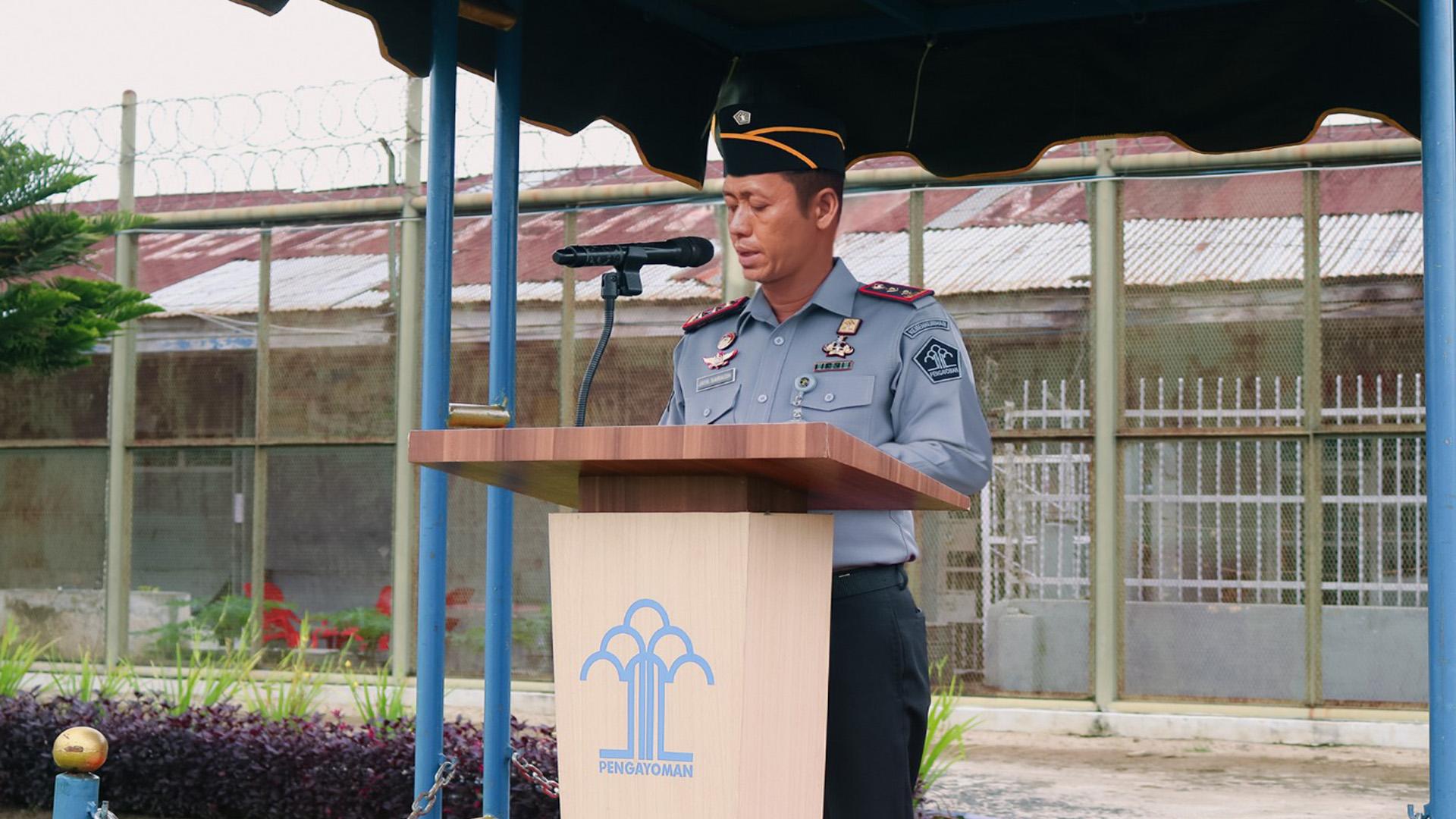 Bertindak sebagai Inspektur Upacara, Kepala Lapas Pematangsiantar Kanwil Kemenkumham Sumut, Sukarno Ali pimpin upacara memperingati Hari Kesaktian Pancasila 1 Oktober 2024 yang berlangsung di Lapangan Upacara Lapas Pematang, Selasa (1/10).