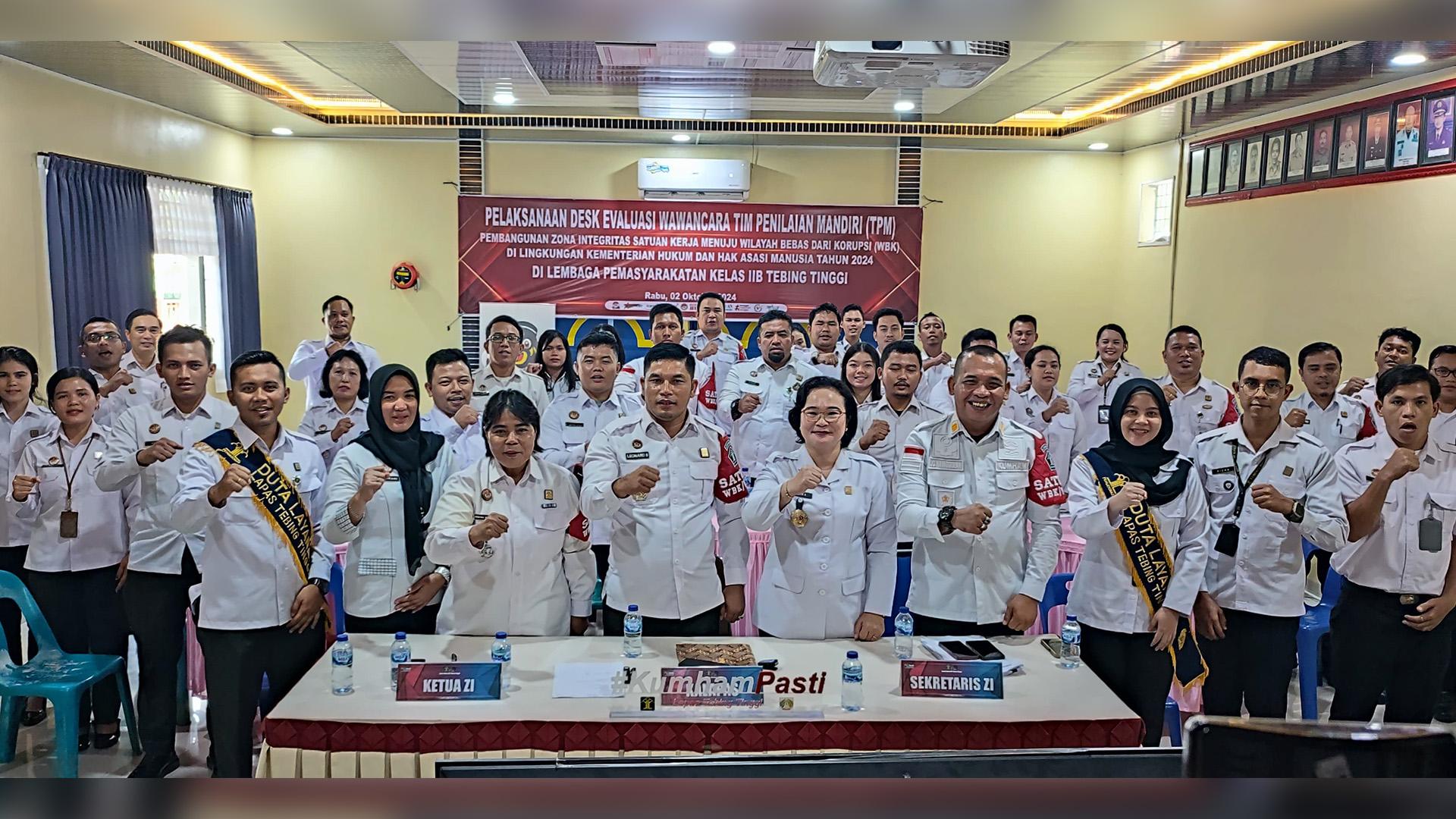 TRIBUN-MEDAN.com, TEBING TINGGI - Lembaga Pemasyarakatan (Lapas) Kelas IIB Tebing Tinggi Kanwil Kemenkumham Sumut melalui Tim Zona Integritas (ZI) telah sukses dan menyelesaikan desk evaluasi wawancara pembangunan Zona Integritas menuju Wilayah Bebas dari Korupsi (WBK) yang dilaksanakan oleh Tim Penilai Mandiri (TPM) Kemenkumham yang digelar secara virtual di Aula Sasana Tama Lapas, Rabu (02/10).