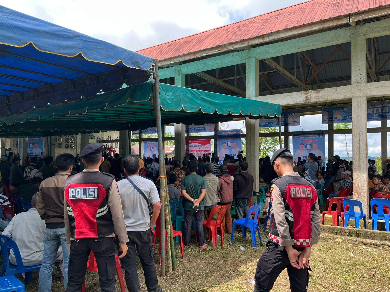 Personel Polres dikerahkan ke Desa Caritas Sogawunasi, Kecamatan Lolomatua untuk memastikan keamanan kampanye pasangan calon nomor urut 4.