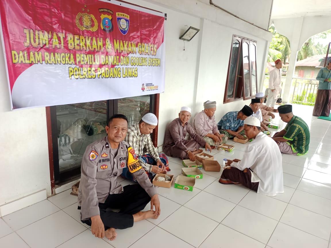 TRIBUN-MEDAN.com, PADANGLAWAS - Dalam upaya menciptakan situasi keamanan dan ketertiban masyarakat (Harkamtibmas) menjelang Pilkada serentak 2024, Satuan Bimbingan Masyarakat Kepolisian Resor Padang Lawas (Satbinmas Polres Palas) melaksanakan kegiatan “Jumat Curhat dan Jumat Berkah” dalam rangka Cooling System Pilkada Damai pada Jumat (11/10/2024).