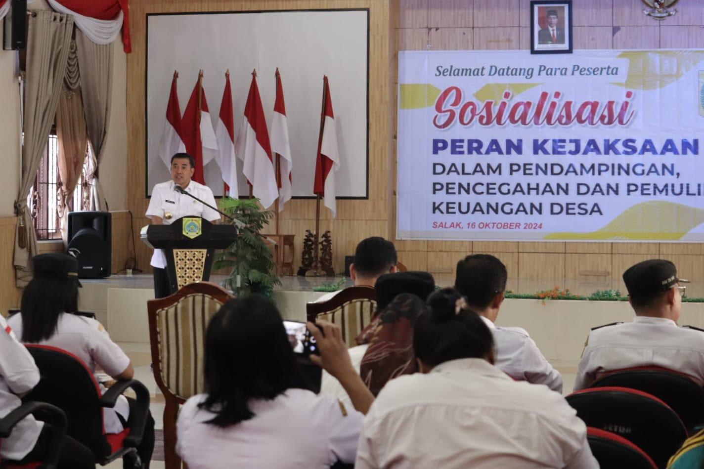 TRIBUN-MEDAN.COM - Pjs. Bupati Pakpak Bharat, Dr. Naslindo Sirait membuka Sosialisasi Peran Kejaksaan Dalam Pendampingan, Pencegahan, dan Pemulihan Keuangan Desa di Aula Bale Sada Arih, Kompleks Kantor Bupati Pakpak Bharat, Rabu (16/4/2024).