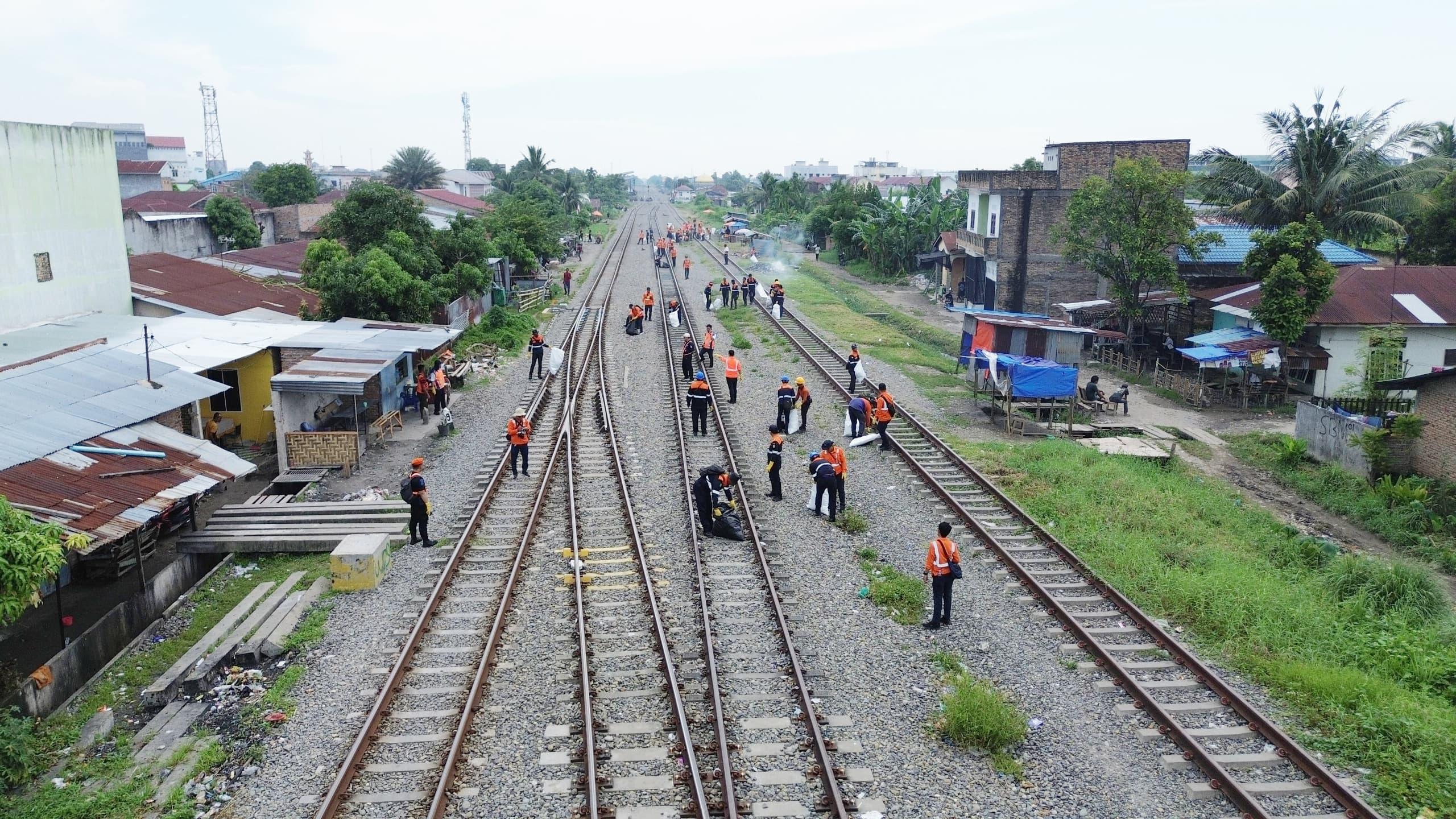 KAI Divre I Sumut Gelar Aksi Bersih Lintas di Sepanjang Jalur Medan-Bandar Kalipah