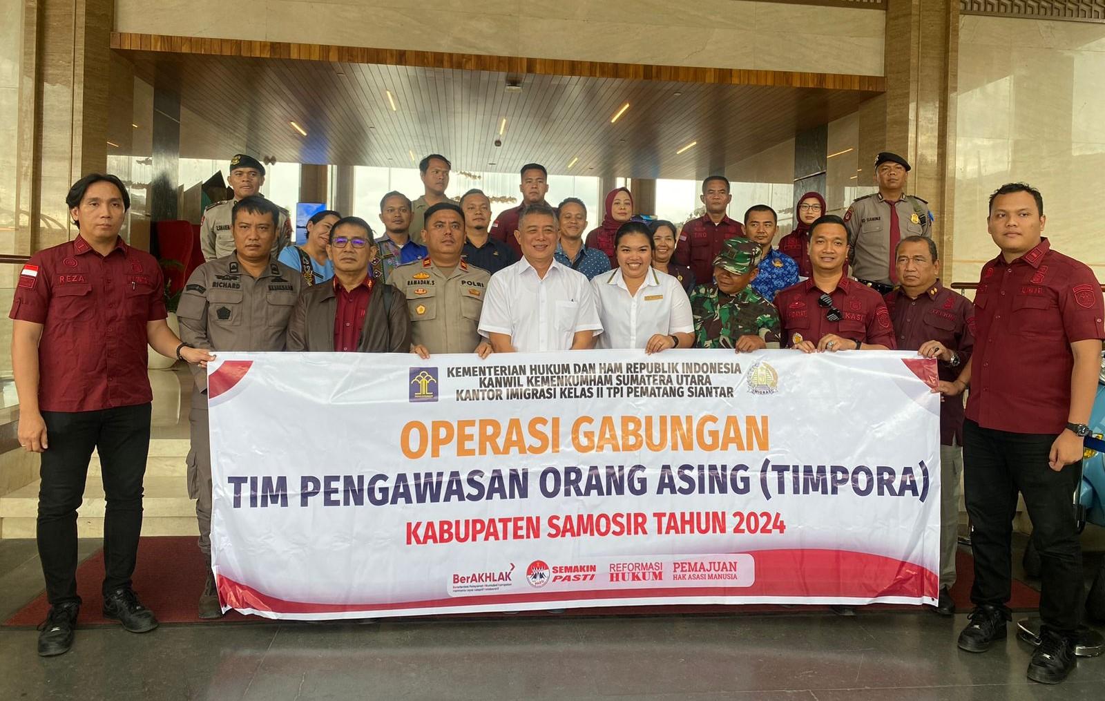 TRIBUN-MEDAN.com, SAMOSIR - Perkuat pengawasan orang asing, Kantor Wilayah Kementerian Hukum dan HAM Sumatera Utara (Kanwil Kemenkumham Sumut) hadiri kegiatan Rapat Koordinasi Tim Pengawasan Orang Asing (Timpora) dan Operasi Gabungan Kabupaten Samosir. Jum'at, (18/10/2024).