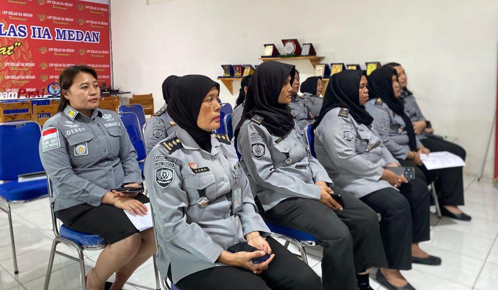 Kepala Lembaga Pemasyarakatan (Kalapas) Perempuan Kelas II A Medan, Agustinawati Nainggolan melaksanakan rapat dengan seluruh pejabat struktural,
