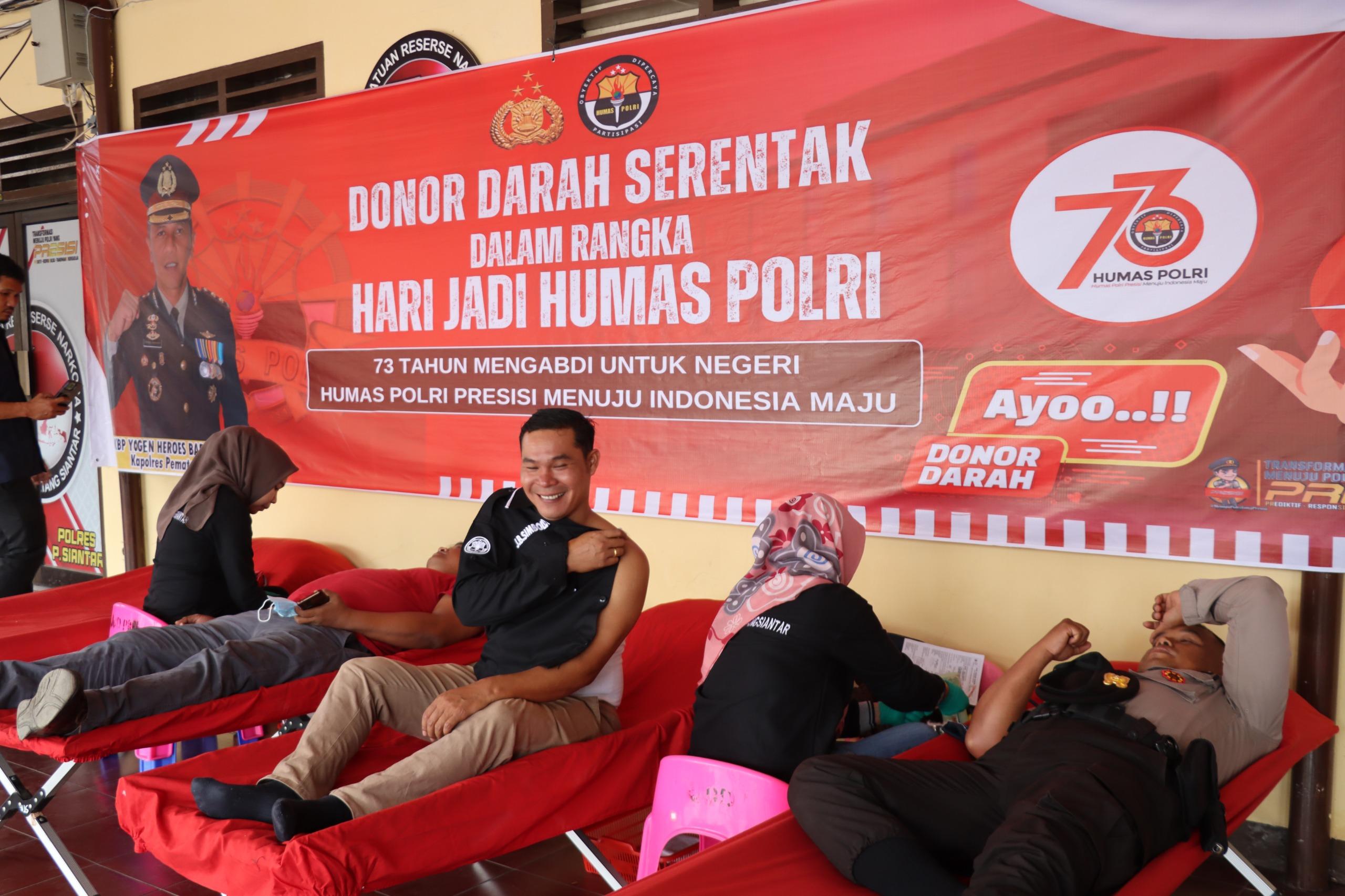 emperingati Hari Ulang Tahun (HUT) ke-73 Humas Polri tahun 2024, Polres Pematangsiantar mengadakan kegiatan Bhakti Kesehatan berupa donor darah di Mak
