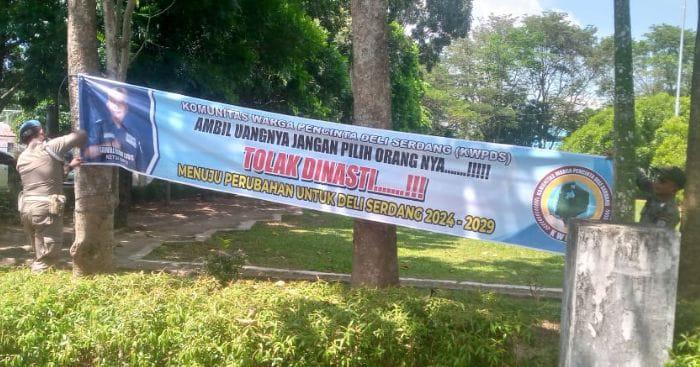 Spanduk Tolak Dinasti Muncul di Komplek Perkantoran Bupati Deli Serdang, Satpol PP Turun Tangan