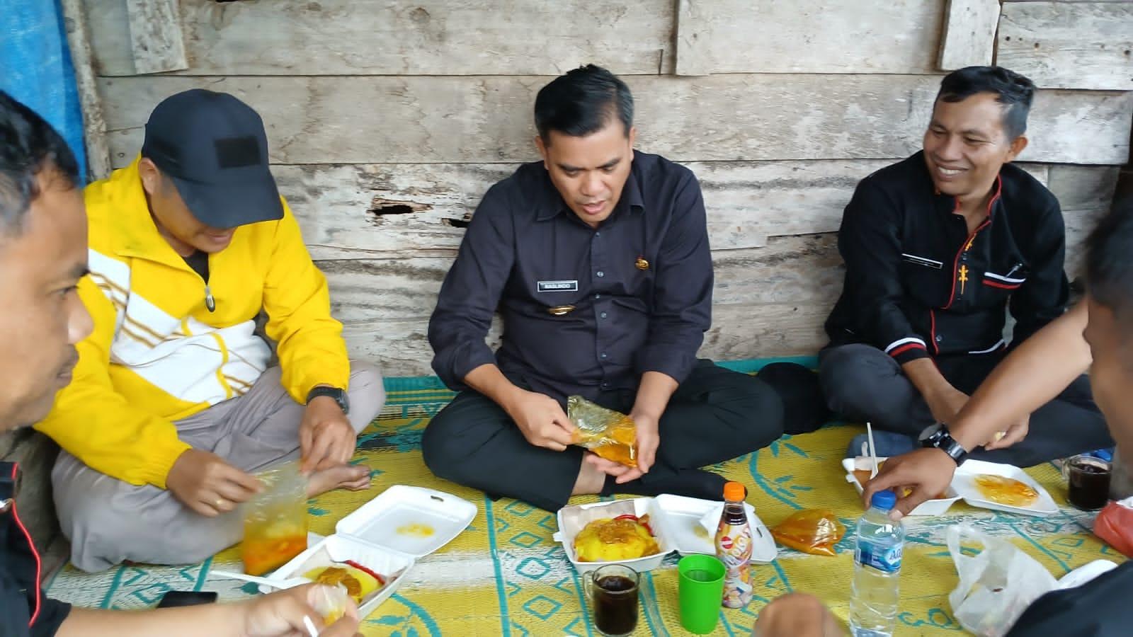 Disela-sela monitoring ini, Kepala Desa bersama warga setempat menyuguhkan makanan pelleng kepada Pjs. Bupati dan rombongan di lokasi, sembari berdiskusi pengembangan desa dan pertanian di Desa Silimakuta.