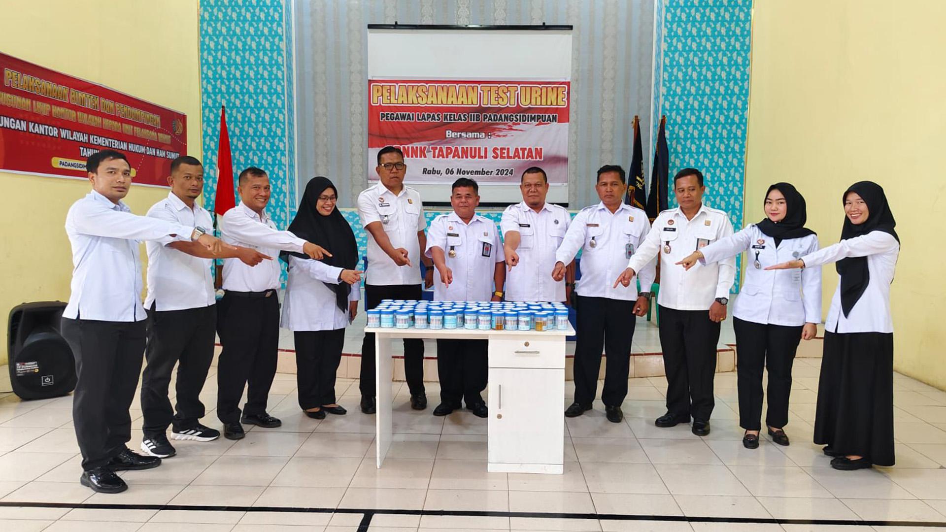 Lapas Padangsidimpuan gandeng BNNK Tapsel untuk menggelar tes urin kepada seluruh petugas Lapas Padangsidimpuan, Rabu (06/11/24).